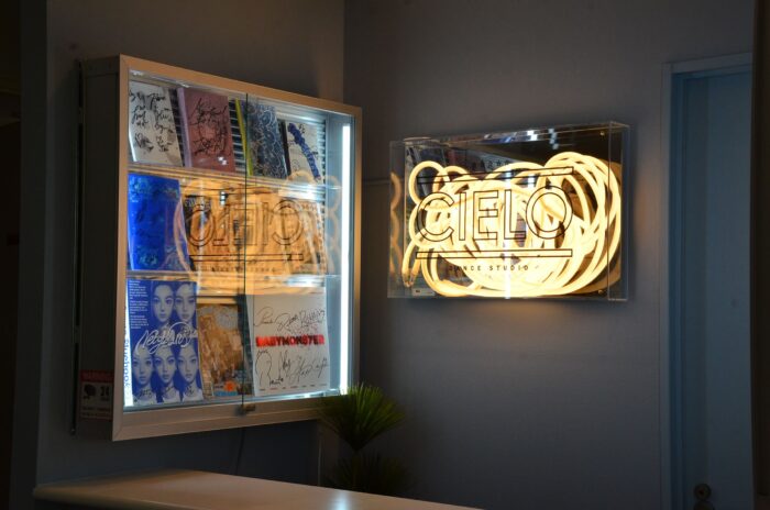 日々の練習やパフォーマンスを動画に撮影して発信する際、その背景にサインが映り込むことで、動画自体の完成度が高まり、ブランドとしての統一感も強調されます。SNSでの発信を前提とした時代にふさわしいスタジオ空間になりました