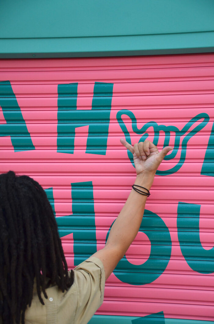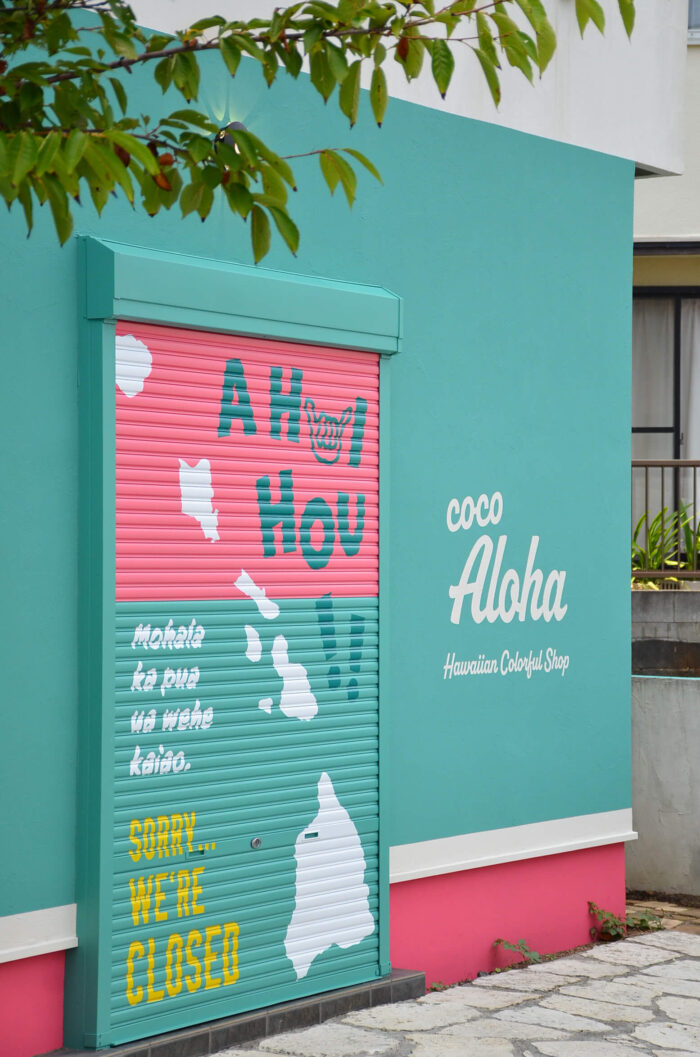 シャッターが閉まった状態の時はハワイ語でsee you!という感じの「A HUI HOU!!🤙」の文字を。