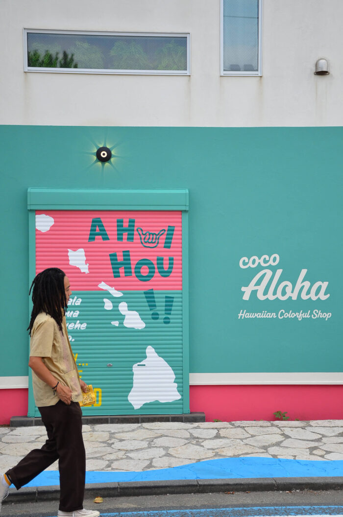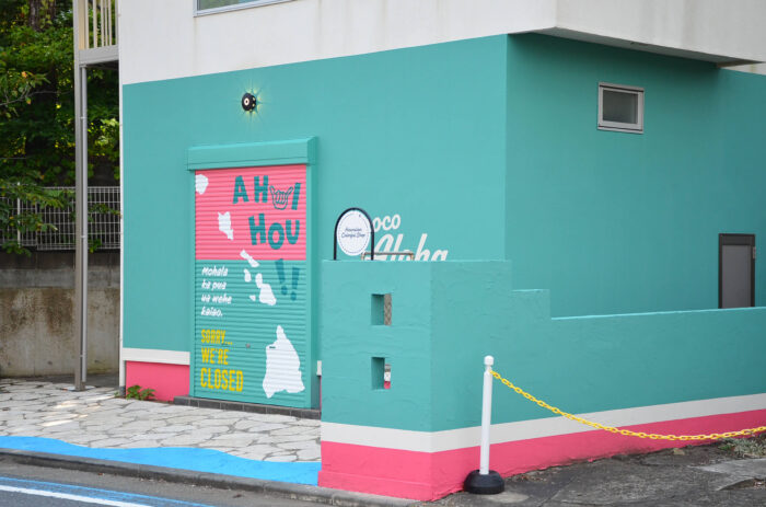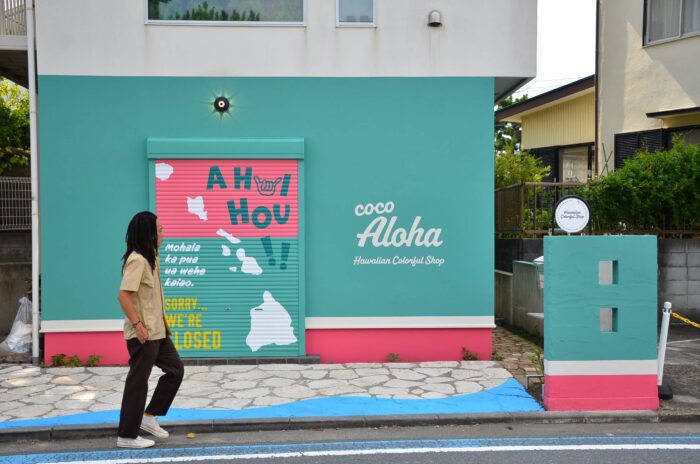 外壁はハワイの街角にあるローカルショップを思わせる、大胆な塗装。