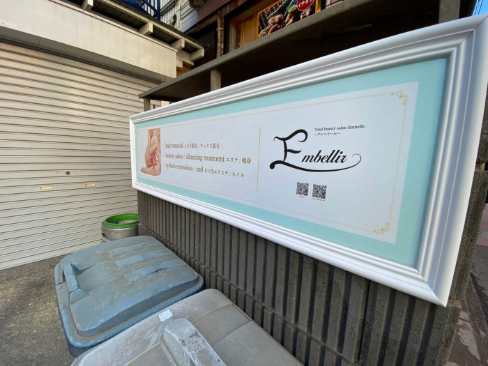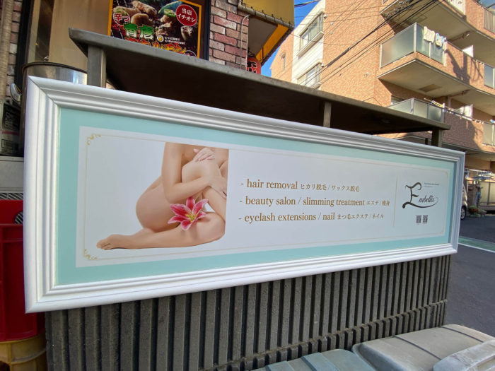 写真入りの施術メニューサインも額縁仕様することで上品な見え方になりますね。