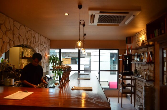 店内は、大きな改装はせず、オーナー自身で壁と床を塗り直し、ガラスを覆っていたシートを外して自然光を招き入れ余計な物はそぎ落とし、明るく開放的で、空気のいい店内に仕上がっていました。